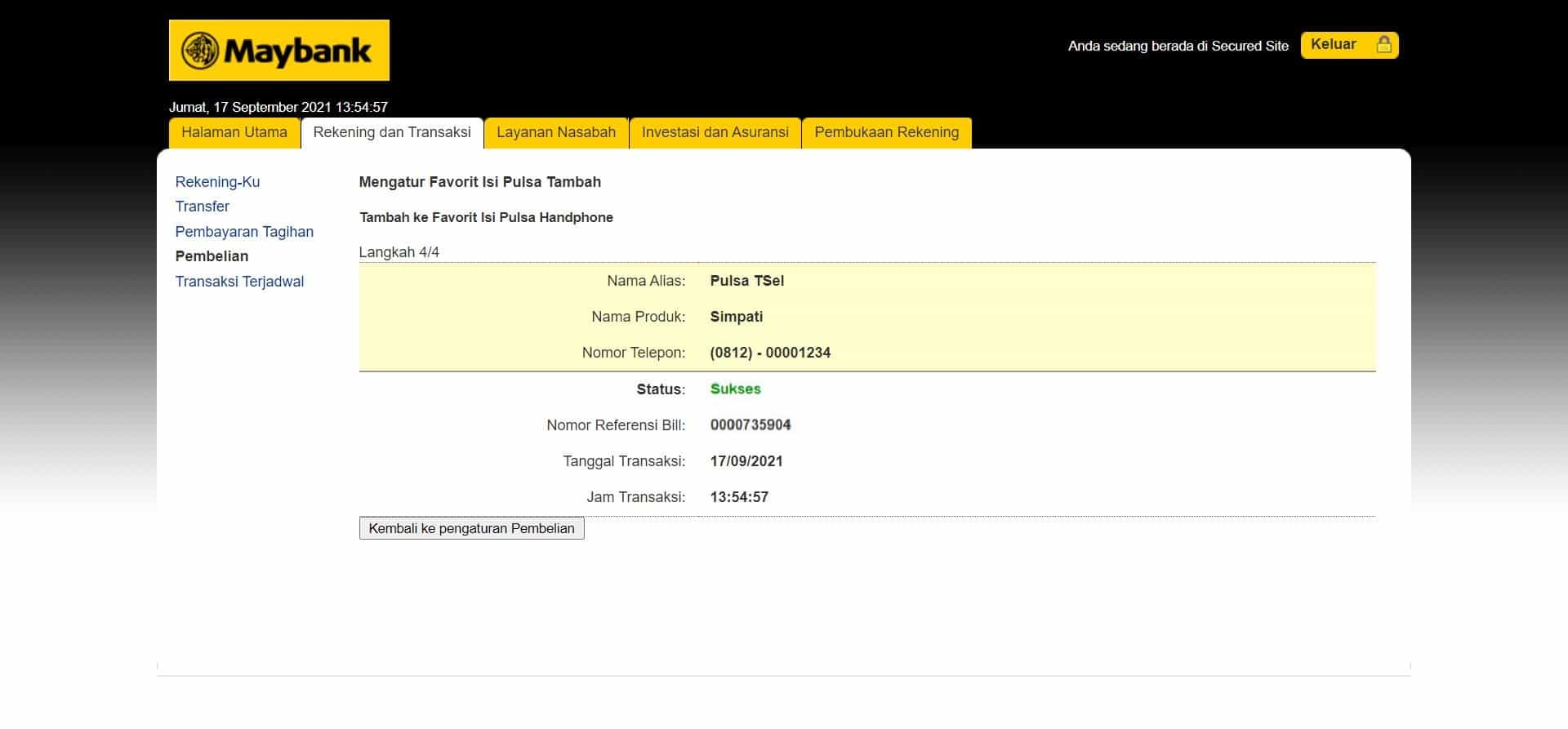 Klik Menu Rekening dan Transaksi, pada pilihan menu di kiri klik “Pembelian”