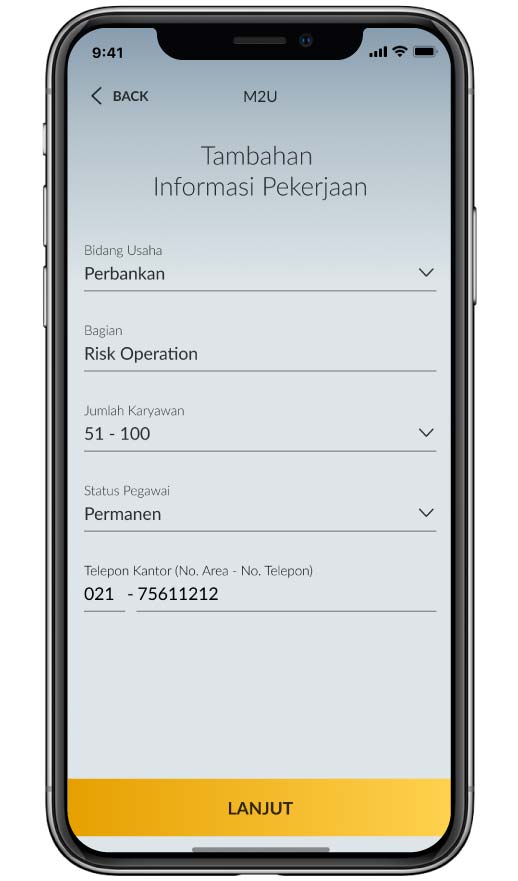 Isi informasi pekerjaan, kemudian klik “Lanjut” |