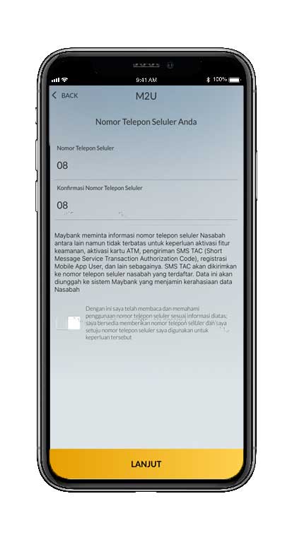 Disarankan untuk menggunakan nomor handphone yang saat ini digunakan untuk daftar M2U ID App