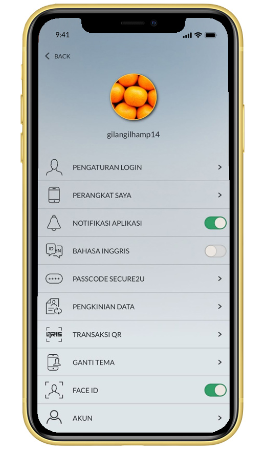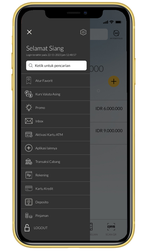 Pada tampilan rekening, klik icon menu di pojok kiri atas