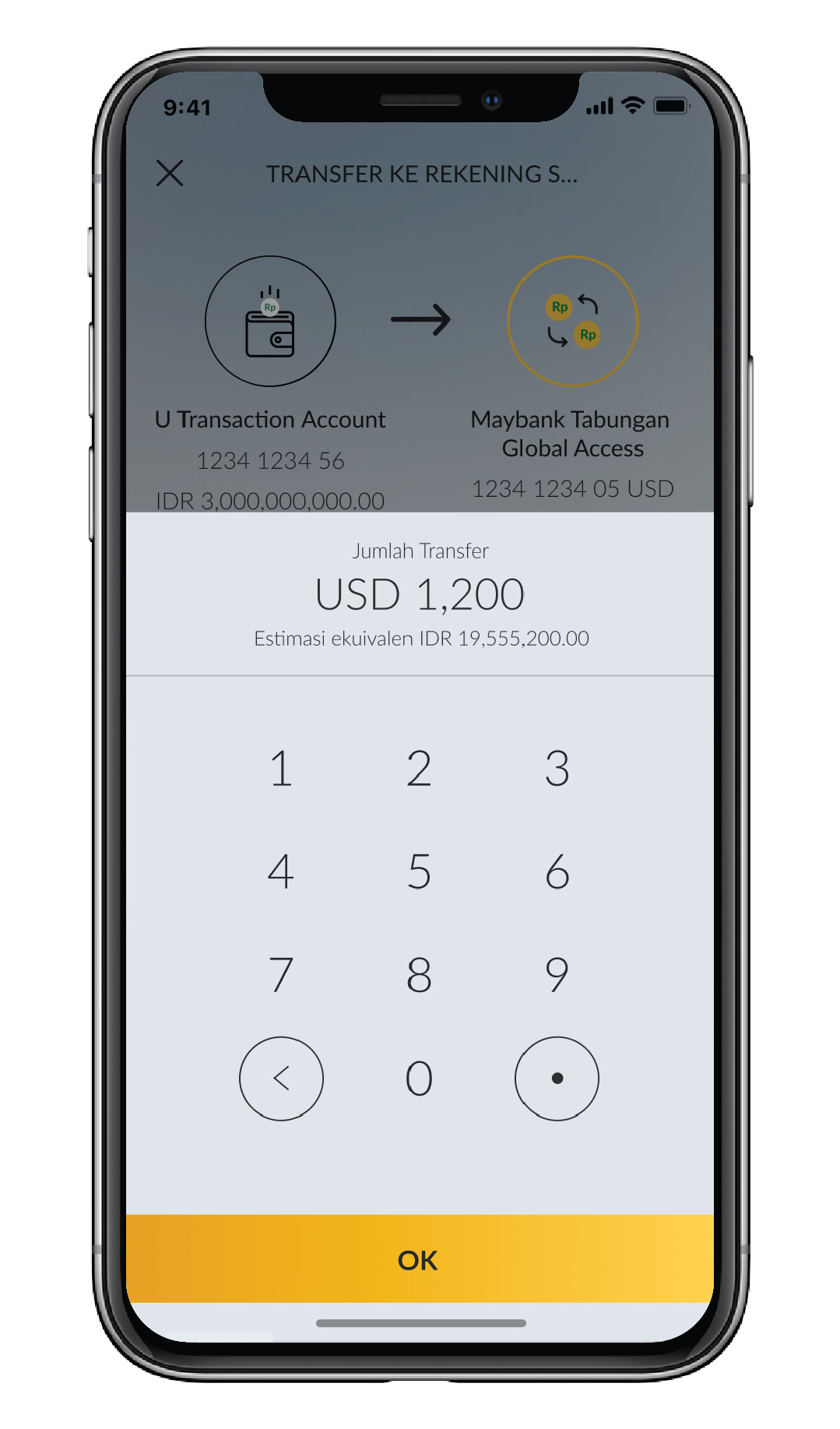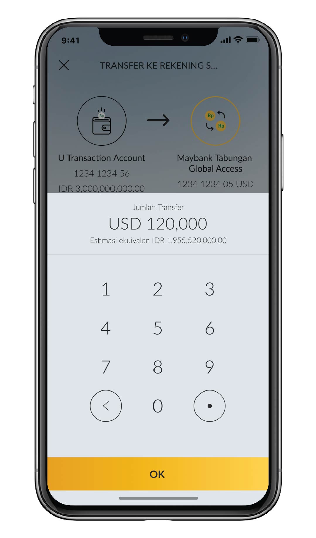 Masukkan nominal transaksi. Informasi nominal ekuivalen akan tampil otomatis |
