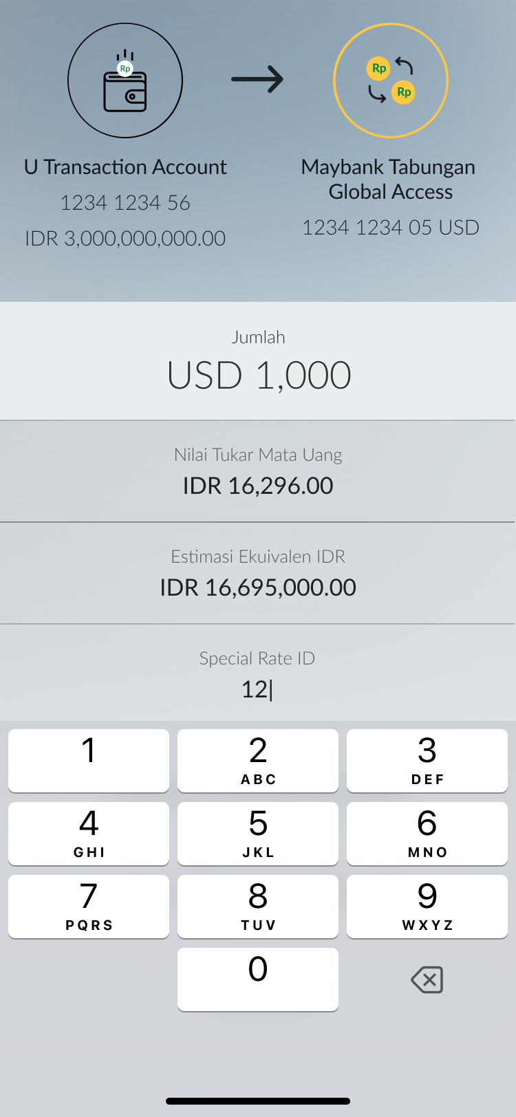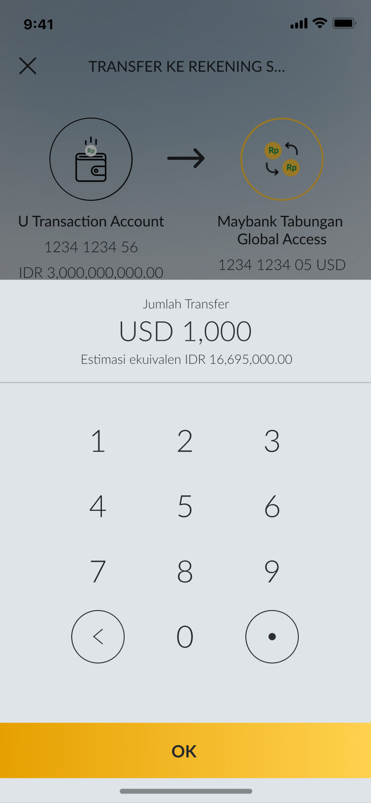 Masukkan nominal transaksi. Nominal ekuivalen akan muncul otomatis |