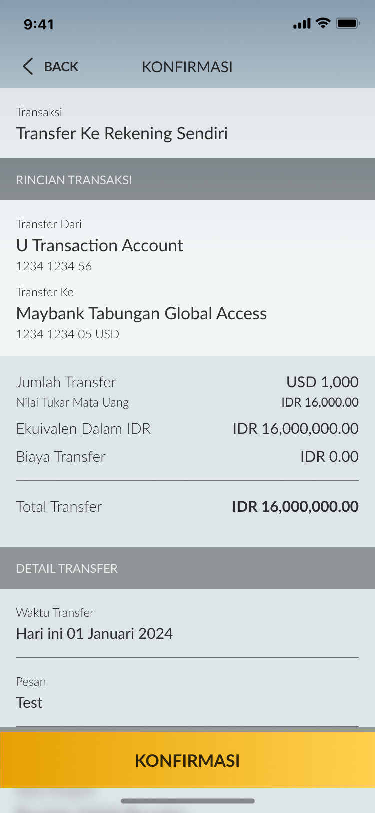 Periksa detail transaksi, lalu ketuk ‘Konfirmasi’ |