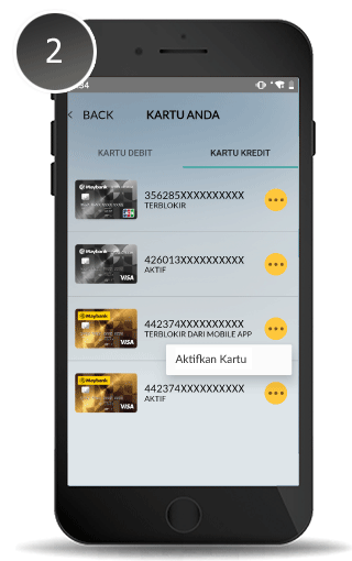 Pilih kartu debit/kredit yang ingin dibuka blokir |