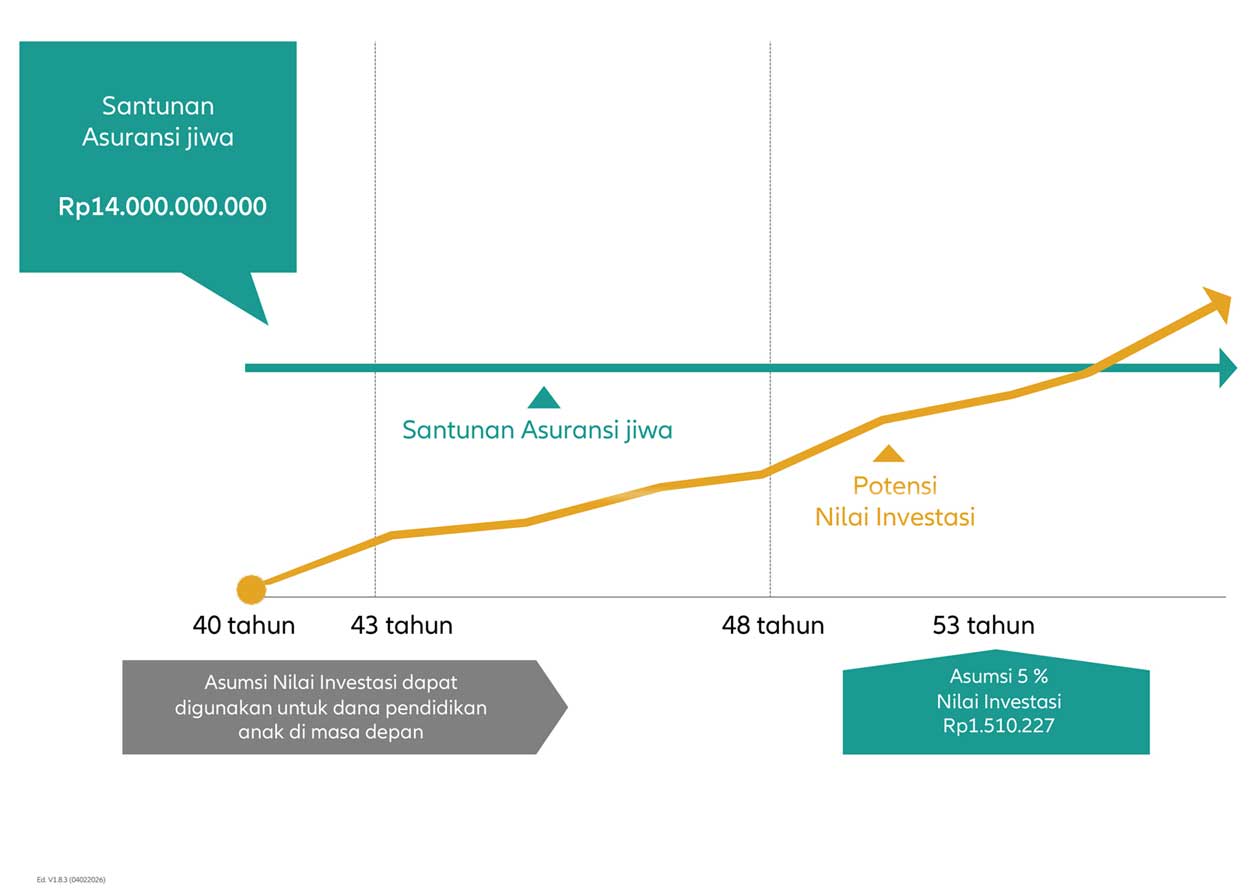 Nilai dari total unit kontribusi berkala & kontribusi top up tunggal (apabila ada) yang telah terbentuk dalam polis berdasarkan harga unit pada suatu saat tertentu. Harga unit bergantung dari perkembangan investasi dari subdana yang dipilih. |